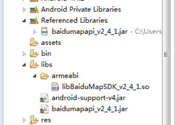2、将开发包(BaiduMap_AndroidSDK_v2.4.1_Lib.zip)解压,得到: