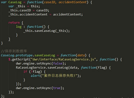 在道路救援项目中,当操作员每一次进行一步操作,都要记录在案件日志表里面,用来让管理员清晰的看到每一步操作的操作流程,为了不重复开发,需要做一个案件记录的工具JS:CaseLogUtil.js