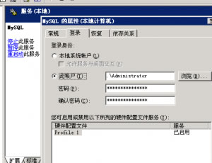 用管理员帐号权限来启动看是否可以解决.开始->输入services.msc,找到MySQL服务,右键属性,登录,选择此帐户,然后选择Administrator和相应密码,确定.结果服务就神奇的起来了.