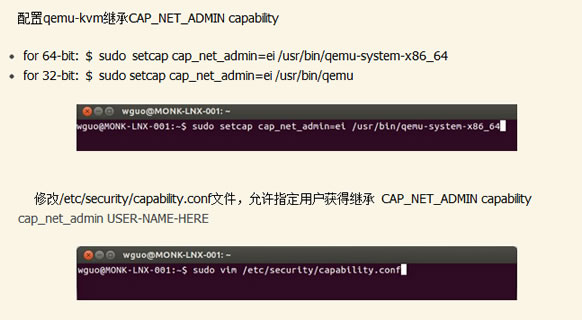网上有篇文章中提到,还需要配置qemu-kvm继承CAP_NET_ADMIN capability,如下图所示:
