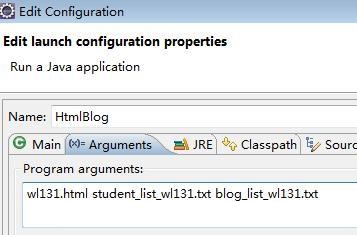 (a)命令行。 编译 javac HtmlBlog.java ;运行 java HtmlBlog wl131.html student_list_wl131.txt blog_list_wl131.txt